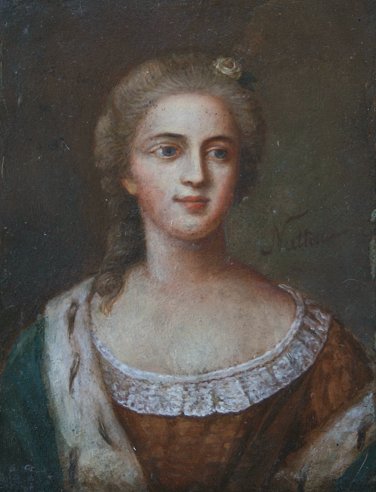 NATTIER, Jean Marc, (French, 1685-1766) attributed: Portrait of a young maiden, Oil on Copper, 3 3/8'' x 2 1/2'', signed middle right, unframed. Condition - Needs cleaning.