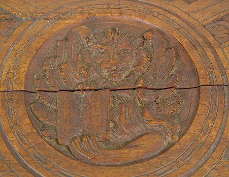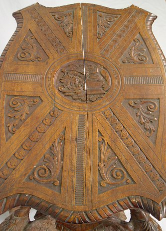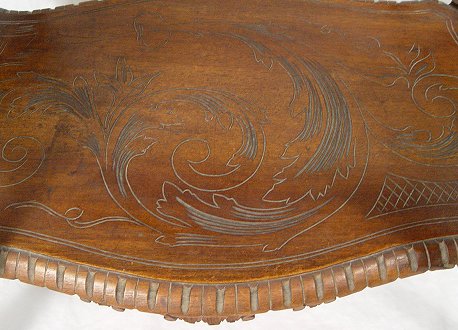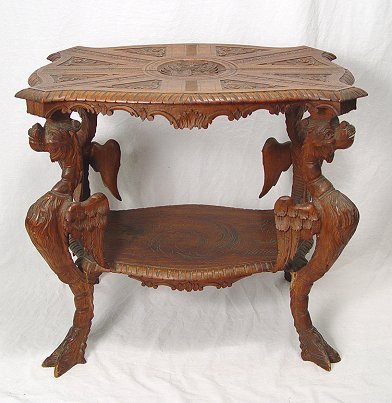 CONTINENTAL GRIFFIN CARVED WALNUT SIDE TABLE: Fabulous full bodied winged griffin legs, carved aprons, relief carved table top, 27''h x 29''w x 19 1/2''.