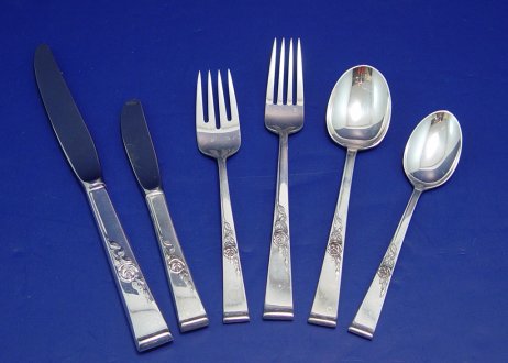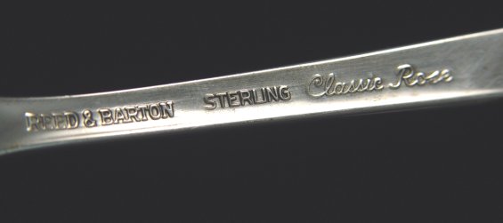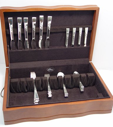 REED & BARTON ''CLASSIC ROSE'' STERLING FLATWARE: 31 pieces to include 6 each of dinner knives, dinner forks, salad forks, 3 tablespoons, and 4 butter knives. No monograms, in like new condition. Sold with a wooden storage box.