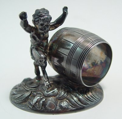 BABY SATYR FIGURAL NAPKIN RING BY PAIRPOINT: Victorian silverplate satyr child 3 1/2''h. x 3 1/2''. Pairpoint Mfg. of New Bedford hallmark.
