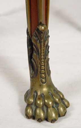 FRENCH REVOLVING MARBLE TOP ORMOLU BOOKCASE: Interior only revolves, divided into four sections 10''h. x 4 1/2''w. The front legs have ormolu including the paw feet. Marble top is 16'' square. 33 1/2''h.