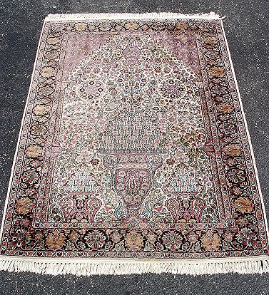 BEAUTIFUL SILK PERSIAN CARPET: Approx. 4'3'' x 5'11'', scenic pattern - Tree of Life??