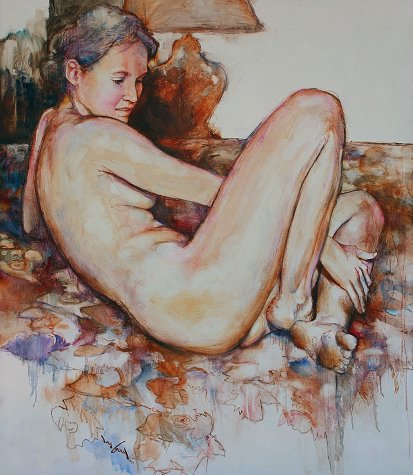 GERARD, Jonas, (American, 20th C): ''Moments Alone'', O/C, 46'' x 40'', signed lower left and verso, titled and dated 2/18/81.