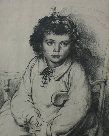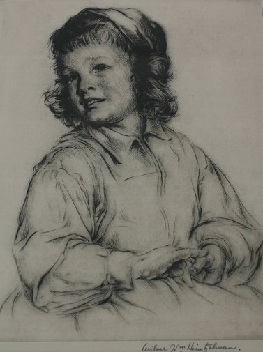 HEINTZELMAN, Arthur William, (American, 1891-1965): Three piece Dry Point Etching lot to include a child seated in a chair, 12 1/2'' x 9 1/4'', pencil signed lower right. Next piece is a little girl with clasped hands, sight size 9 1/2'' x 7 1/2'', pencil signed lower right. The last piece is an elderly woman seated in an interior, 5'' x 5 1/2'', pencil signed lower right.