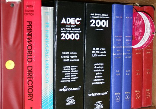 ART REFERENCE DEALERS STARTER KIT TO INCLUDE: Hislop's Auction prices of impressionists and 20th Century artists Volumes One and Two (1970-1980), Auction Prices of 19th Century Artist Volumes One and Two (1970-1980), Art Price Annual 2001, Art Price Annual 2000, The Print World Directory 4th Edition, The Print World Directory 8th Edition, a bonus loose-leaf notebook with accumulated sales results from auctions houses around the world.