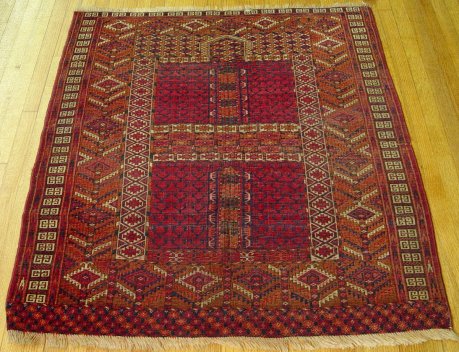 HAND WOVEN PERSIAN RUG: Approx. 5'6'' x 4'. Deep red ground, geometric border.