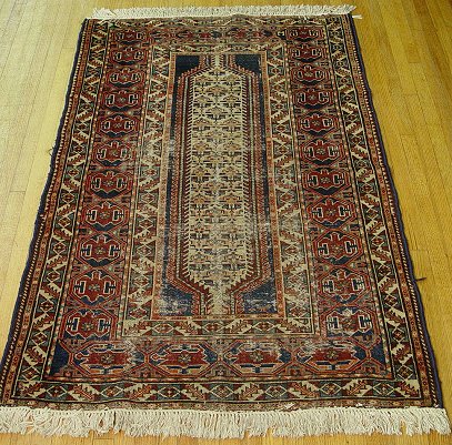 SEMI-ANTIQUE PERSIAN CARPET: Approx. 6'3'' x 4'. Worn condition.