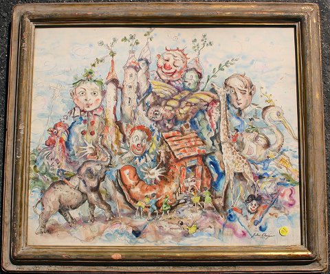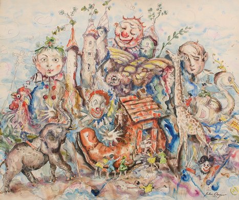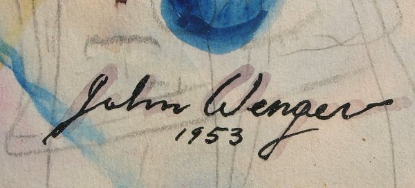 WENGER, John, (American, 1887-1976): ''Fantasy'', W/C, 20'' x 24'', signed lower right, dated 1953, Grand Central Art Gallery label and #8 exhibition label verso, encased in a distressed Newcomb Macklin quality frame, 24'' x 28'' overall.