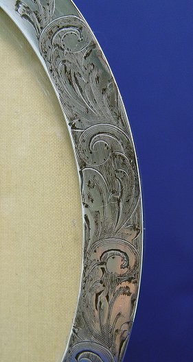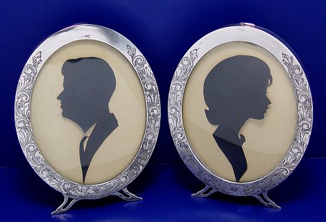 PAIR OF STERLING FRAMES: Oval easel back frames marked Sterling IND 243, overall 7 1/2''h., image opening 6'' x 4 3/4'', purple velvet back and easel (missing stop strips).