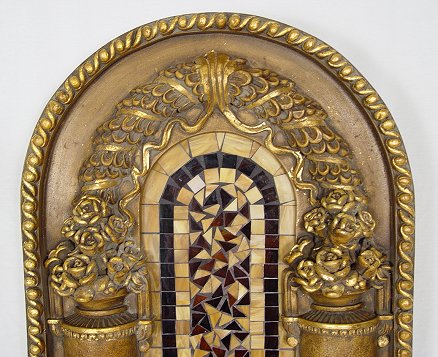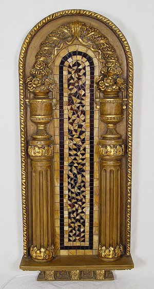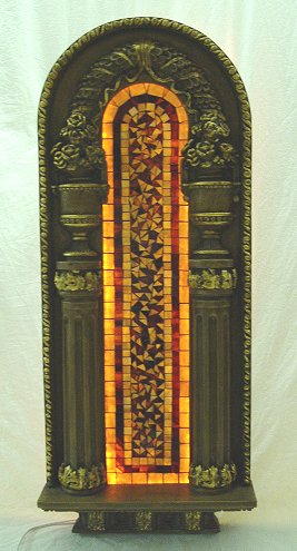 MOSAIC STAIN GLASS ''WINDOW'': Composition frame, electric illumination for a picturesque view on any wall. Contemporary manufacture. 42''h, 21''w.