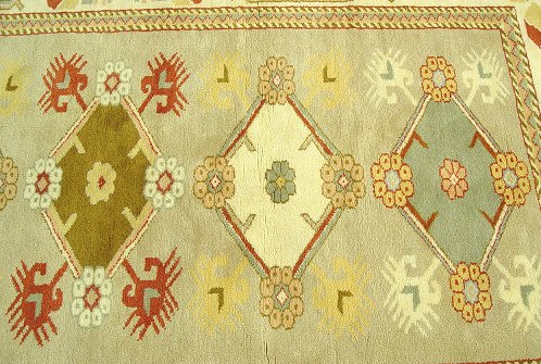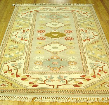 HAND WOVEN TURKISH MILAS CARPET: Approx. 7' x 5'.