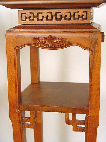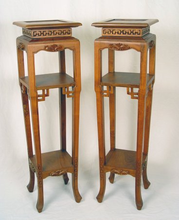 PAIR OF CHINESE CARVED STANDS: Teak or rosewood, graceful form, square top. 42''h.