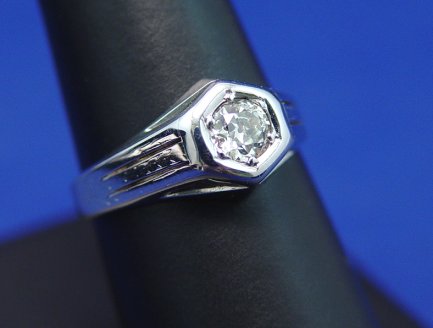 GENTLEMAN'S DECO ERA DIAMOND RING: 18k white gold ring featuring an old Euro cut diamond of approx. 60pts, slight color, VS1, band marked 18k L&R, size 8.5.