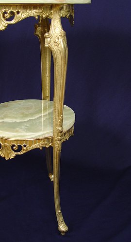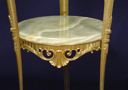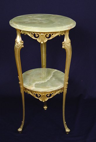 TWO TIER GREEN ONYX STAND: Gilt frame, 29''h, x 16'' dia.