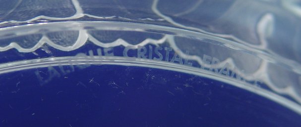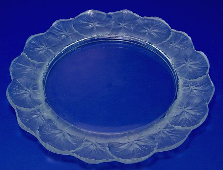 FRENCH LALIQUE CRYSTAL HONFLEUR CHARGER: Raised leaf border, Backstamp ''Lalique Cristal France'' in block letters. 10 3/4''h.