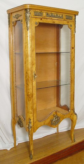 ORMOLU MOUNTED LOUIS XVI STYLE VITRINE: Glass shelf interior with mirror on the bottom. 63 1/2''h, x 28'' x15''.