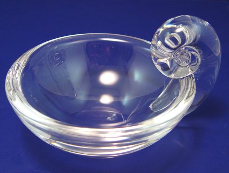 PAIR OF STEUBEN OLIVE DISHES: Signed, in presentation bag. 5'' dia.