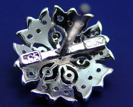 DELIGHTFUL DIAMOND FLORAL STUD EARRINGS: Approx. 1/4ct total weight of tiny diamonds set in a floral snow flake mount of 14k white gold. Marked 585, approx. 1/2''dia. Est. $300/400**