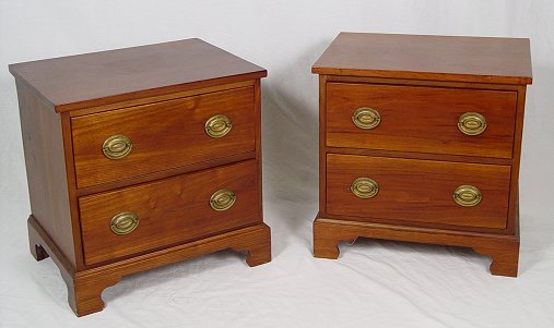 A PAIR OF DIMINUTIVE TWO DRAWER CHERRY STANDS: Federal style chest, Ca. mid 20th C. 20''h, x 20'' x 15''.
