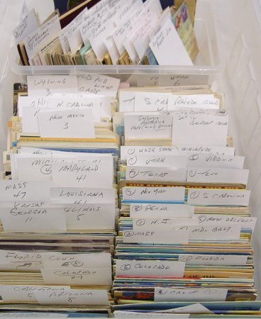 HUGE ESTATE COLLECTION OF VINTAGE POST CARDS: Over 1000 postcards. Travel cards including over 100 old Florida cards, approx. 90 Texas, over 125 New Jersey, black memorabilia. Sold as found, as a collection.