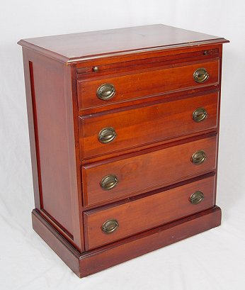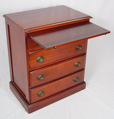 MAHOGANY 4 DRAWER CHEST: 1940's mahogany chest, 4 drawers, slide out surface. 31 1/2''h, x 26''.