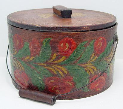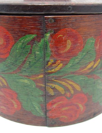 PENNSYLVANIA DUTCH PAINT DECORATED CHEESE BOX: Bentwood, 19th C 6 1/2''h x 11'' dia.