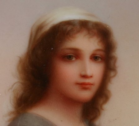 KPM QUALITY PAINTING ON PORCELAIN OF RUTH: Measures 6'' x 4'', illegible writing in pencil verso with impressed mark ''107'', no visible signature.