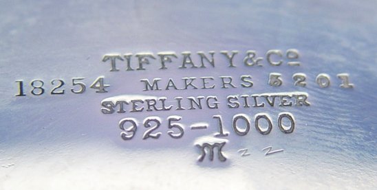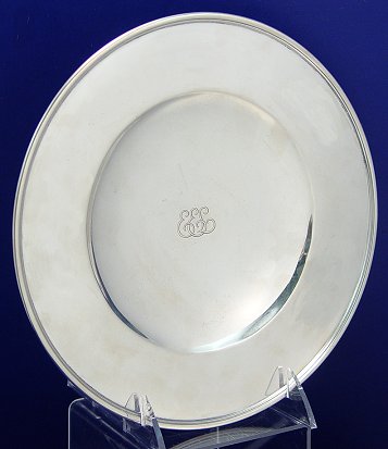 TIFFANY & CO STERLING DISH: Hallmarked ''Tiffany & Co. 18254 Makers 52019 Sterling Silver 925-1000 M'', 9'' dia., 1''h. Monogrammed EEL. No dents or cracks, minor surface scratches. Approx. 12.63 oz.