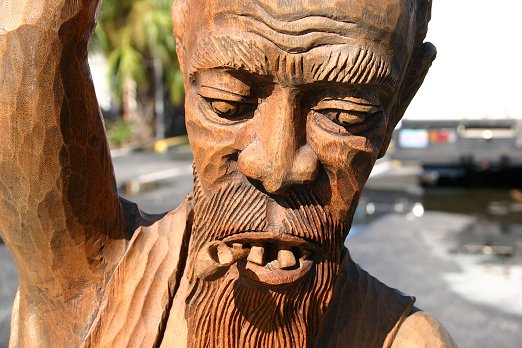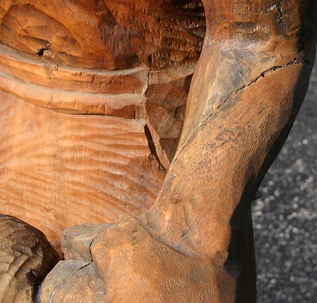 FOLK ART CARVING OF A NEGRO BLACKSMITH: Over 70'' in height, nearly life size, depicts a smithy hammering a piece of metal on his anvil, signed on the base ''Art Aplacide'', CIRCA 1930's. Condition - Older repair to arm, finger and plyers.
