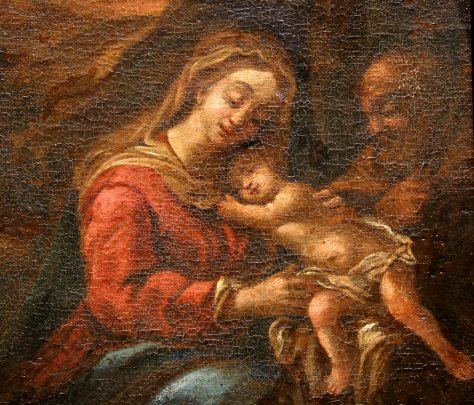 17TH CENTURY NORTH ITALIAN OLD MASTER O/C OF MADONNA AND CHILD: 15'' x 12'', no visible signature. Condition - Re-lined, heavy craquelure throughout, a hint of paint restoration. Est. $500/800**