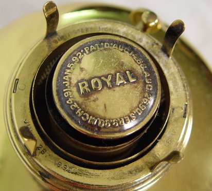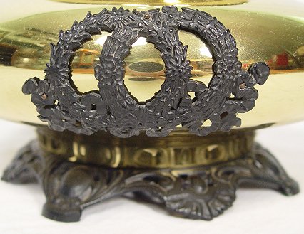 BRADLEY & HUBBARD BRASS AND IRON OIL LAMP: Signed on the black iron base, B&H 7326, and on the oil cap. Restored condition with one small dent. 10 1/2''h, excluding the glass chimney.