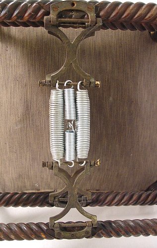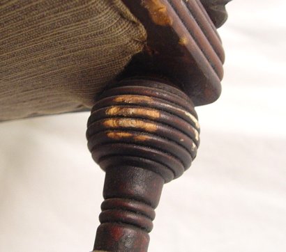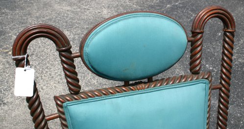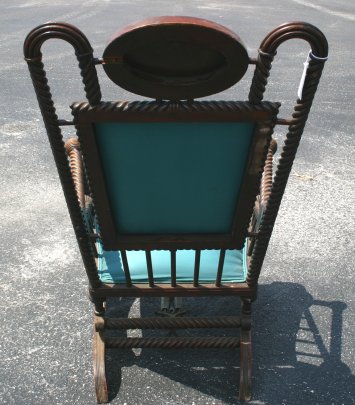HUNZINGER PLATFORM ROCKER: Unsigned. Spiral turned mahogany frame with ball shaped hand holds. Replaced springs. Needs a little TLC. 41''h, 25''w. Est. $600/800**