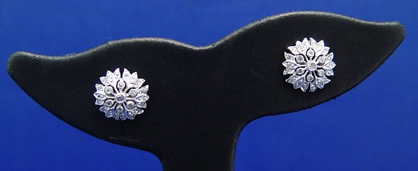 DELIGHTFUL DIAMOND FLORAL STUD EARRINGS: Approx. 1/4ct total weight of tiny diamonds set in a floral snow flake mount of 14k white gold. Marked 585, approx. 1/2''dia. Est. $300/400**
