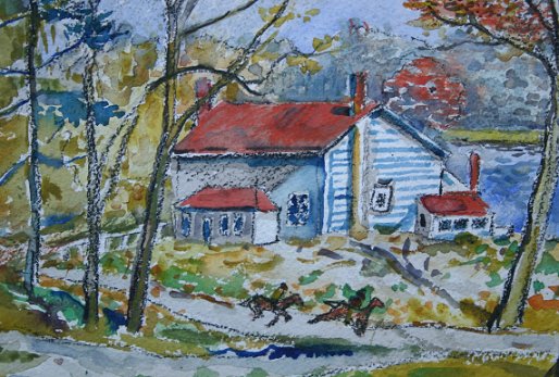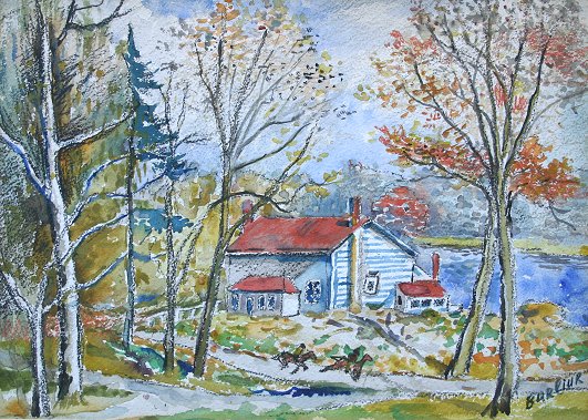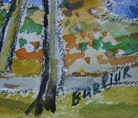 BURLIUK, David, (Russian-American, 1882-1967): A country landscape, W/C, 10 1/4'' x 14 1/2'', signed lower right, encased in contemporary gold frame, 18 1/2'' x 22''.