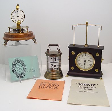 HOROLOVAR REPRODUCTION CLOCKS: Group of 3 to include the Flying Pendulum, the Rotary Pendulum clock and the Plato clock. All three clocks are design wonders. Instruction booklets included.