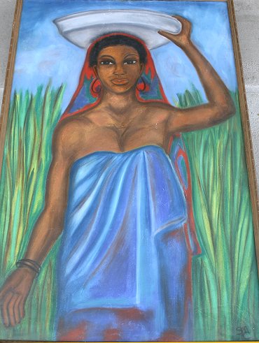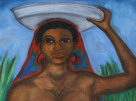 EXHIBITED PASTEL OF AN ISLAND WOMAN: 40'' X 26'', monogrammed lower right ''Afro-American Artists National Exhibition of Paintings, Drawings & Prints''. Label affixed verso. Condition - Sporadic abrasions throughout, several areas of minor creasing.