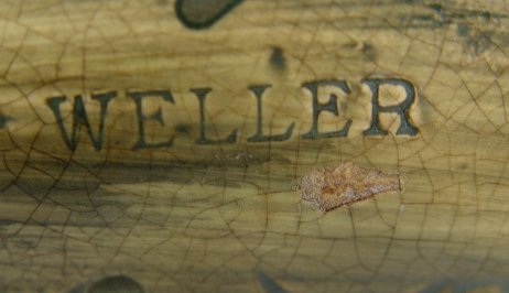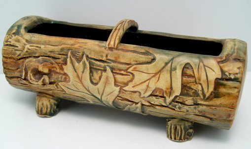 WELLER POTTERY WOODCRAFT BASKET: Log shaped planter. 11''l. Please note chip. Impressed ''Weller''.