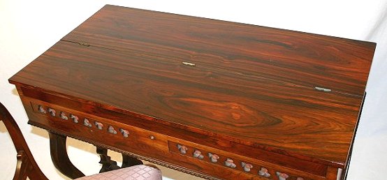 VICTORIAN ROSEWOOD MELODEON WITH CHAIR: In excellent condition, ivory keys, pump action. By SD & AW Smith. 31''h. x 37 1/4'' x 20''.