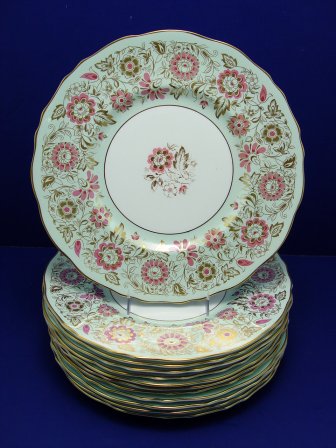 SET OF 12 ROYAL CAULDON SERVICE PLATES: In the light green ''Romney'' pattern. 10 5/8'' dia.