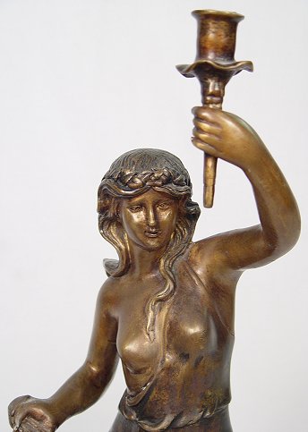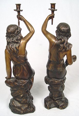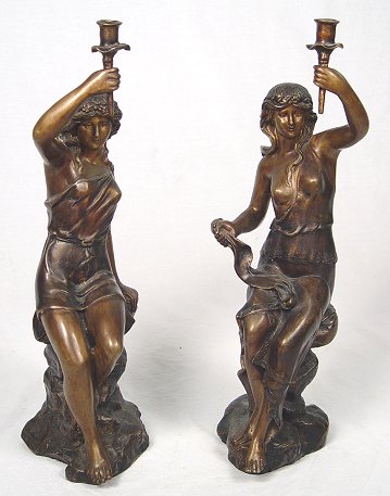 PAIR OF CONTEMPORARY BRONZE FIGURAL CANDLE HOLDERS: Complimentary female figures each with holder for single candle stick. 22 1/2''h.