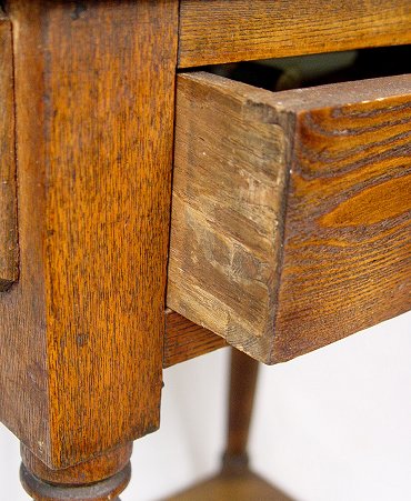 TIGER OAK WASHSTAND: One drawer stand, 2 tiers with shaped lower tier. Scrolled supports for towel bars. 32''h. x 22'' x 15''.