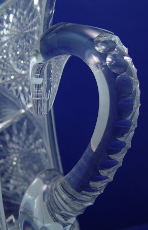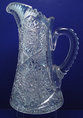 BRILLIANT PERIOD CUT GLASS PITCHER: Pronounced zipper cut along the spout. 11 3/4''h.