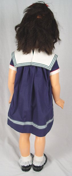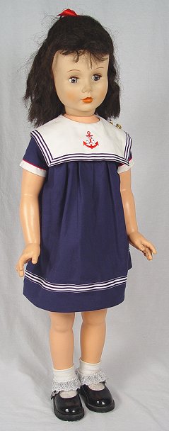36'' HORSEMAN DOLL: In a sailor dress and shiny Mary Jane shoes. Soft rubber head, hard plastic body. Marked Horsman 1959 on the back of her head, Horsman 36 on her back. Very good condition.