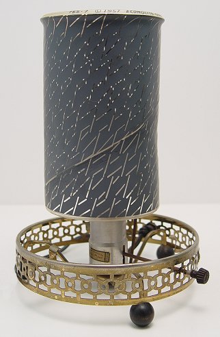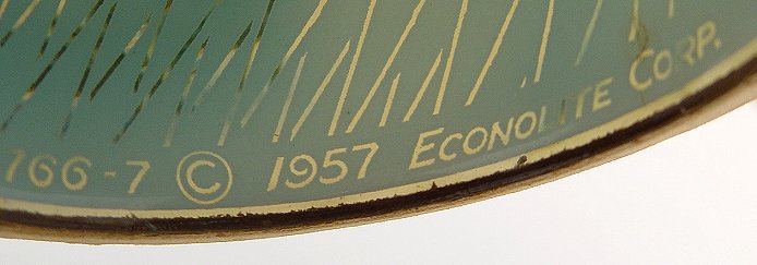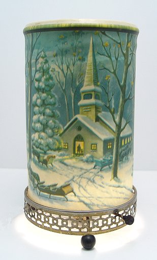 ECONOLITE SNOW SCENE ELECTRIC MOTION LAMP: Winter scene of village church with illusion of snow falling when lamp is in motion. Signed on the plastic shade and the spinning center cylinder. 10 3/4'' x 6''dia. Est. $180/350**