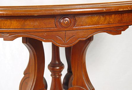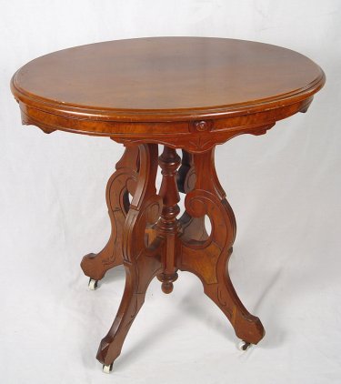 OVAL TOP EASTLAKE VICTORIAN WALNUT LAMP TABLE: 30''h, 29 1/2'' dia.