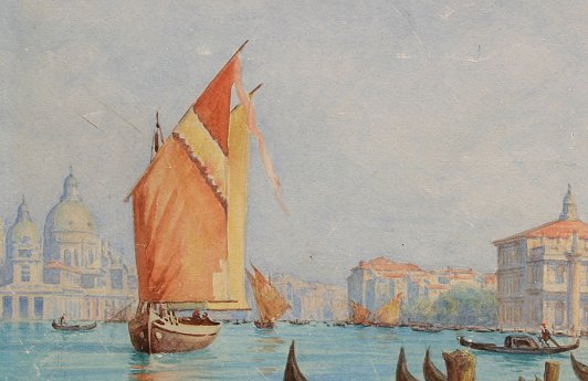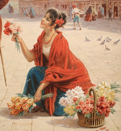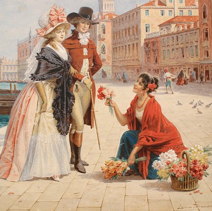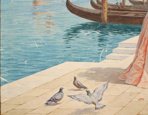 PERAUX, Lionel, (European, 1871-): Venetian Flower Seller, W/C, 18'' x 24'', signed lower right. Condition - Scattered abrasions throughout, very minor staining in the sky.