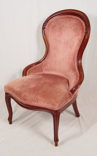 VICTORIAN PARLOR CHAIR CA 1890: Pink velvet upholstery, carved mahogany frame. Est. $150/250**