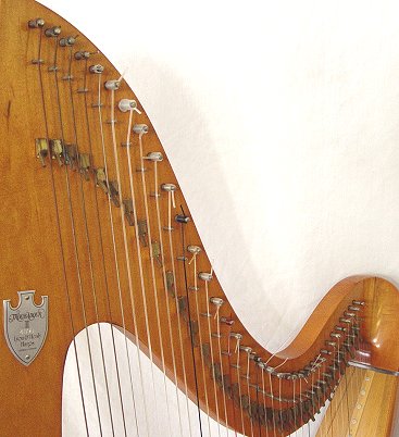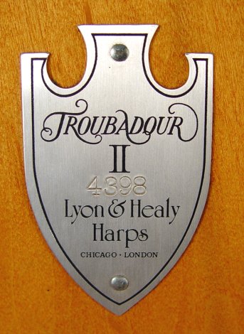 LYON & HEALY TROUBADOUR II HARP: 36 string lever harp. Serial number on the name plate is 4396. With key. Very good condition. 63''h x 29''w. overall.