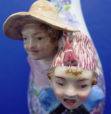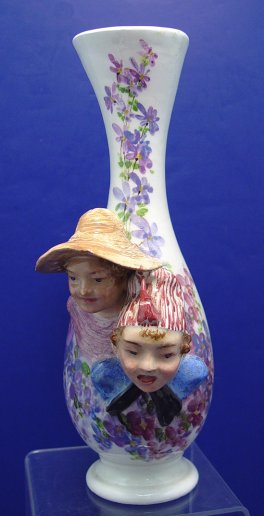 EUROPEAN FIGURAL MAJOLICA SHELF SCONCE: Sold with a 9''h. vase in the same motif, undoubtedly by the same unidentified maker. The shelf is 20''h, the surface is 9''w.