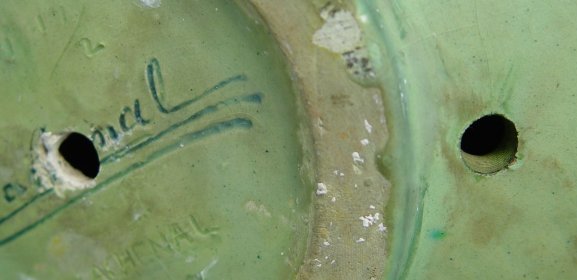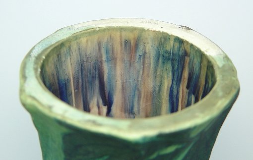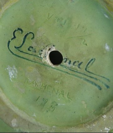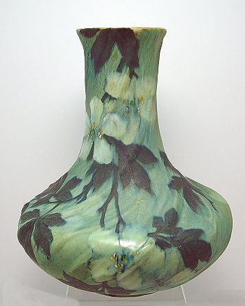 EDMOND LACHENAL ART NOUVEAU POTTERY VASE: Matt and high gloss green on green floral design. Signed E Lachenal, impressed Lachenal. Please call for condition. 13 1/2''h. Est. $1500/1600**
